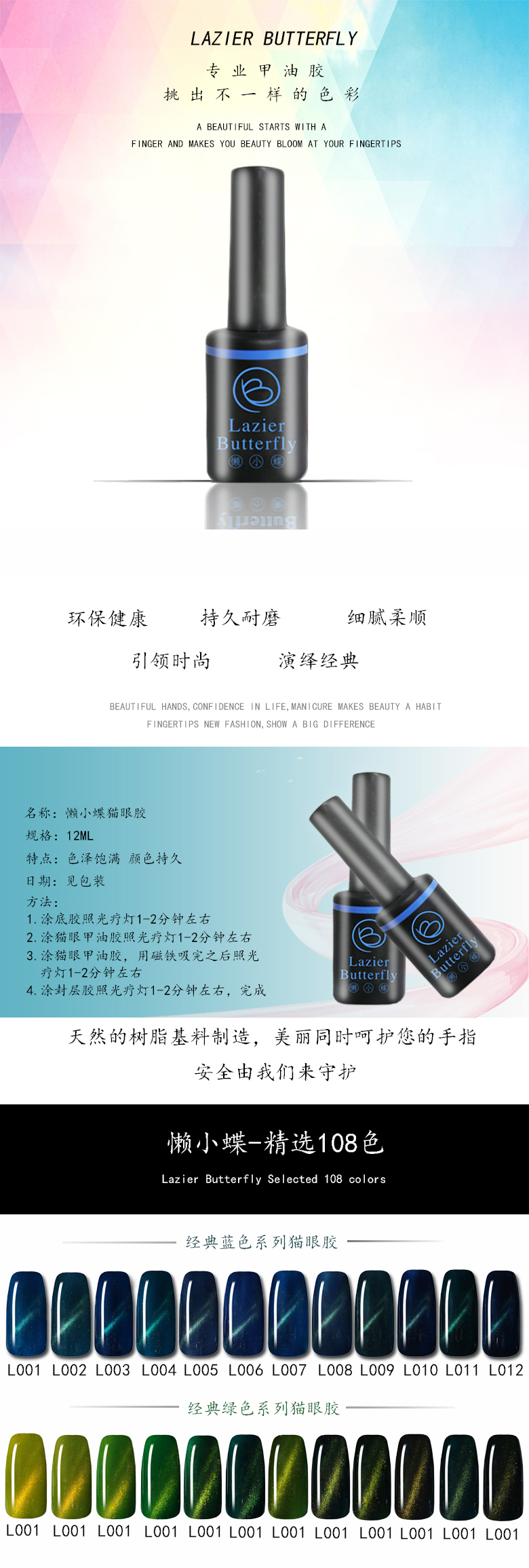 懶小蝶Lazier Butterfly貓眼指甲油膠2018新色隨溫度變色琉璃美甲