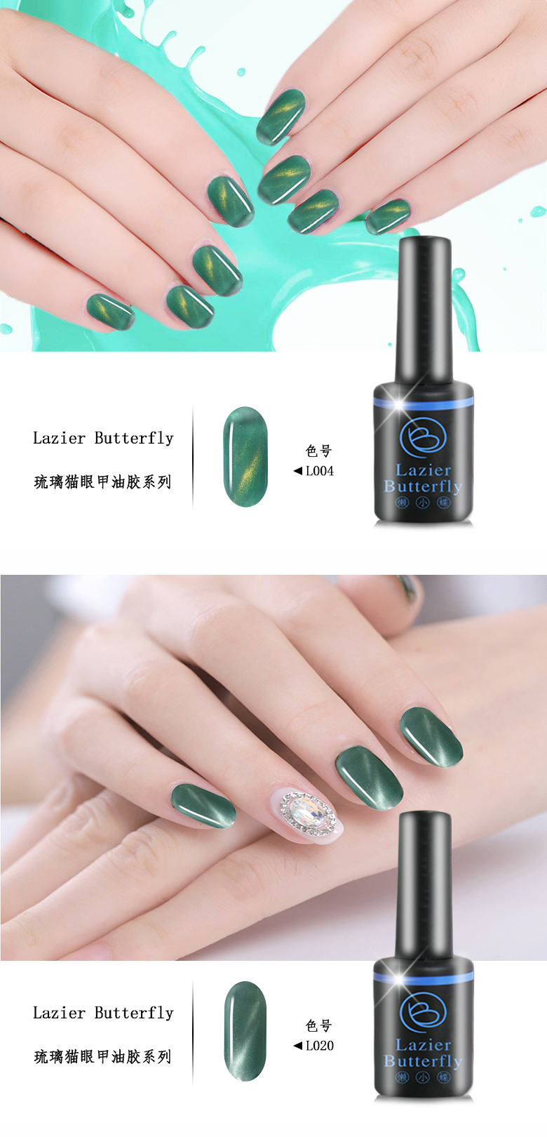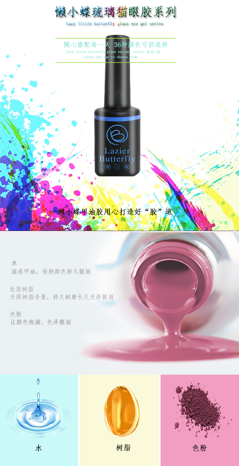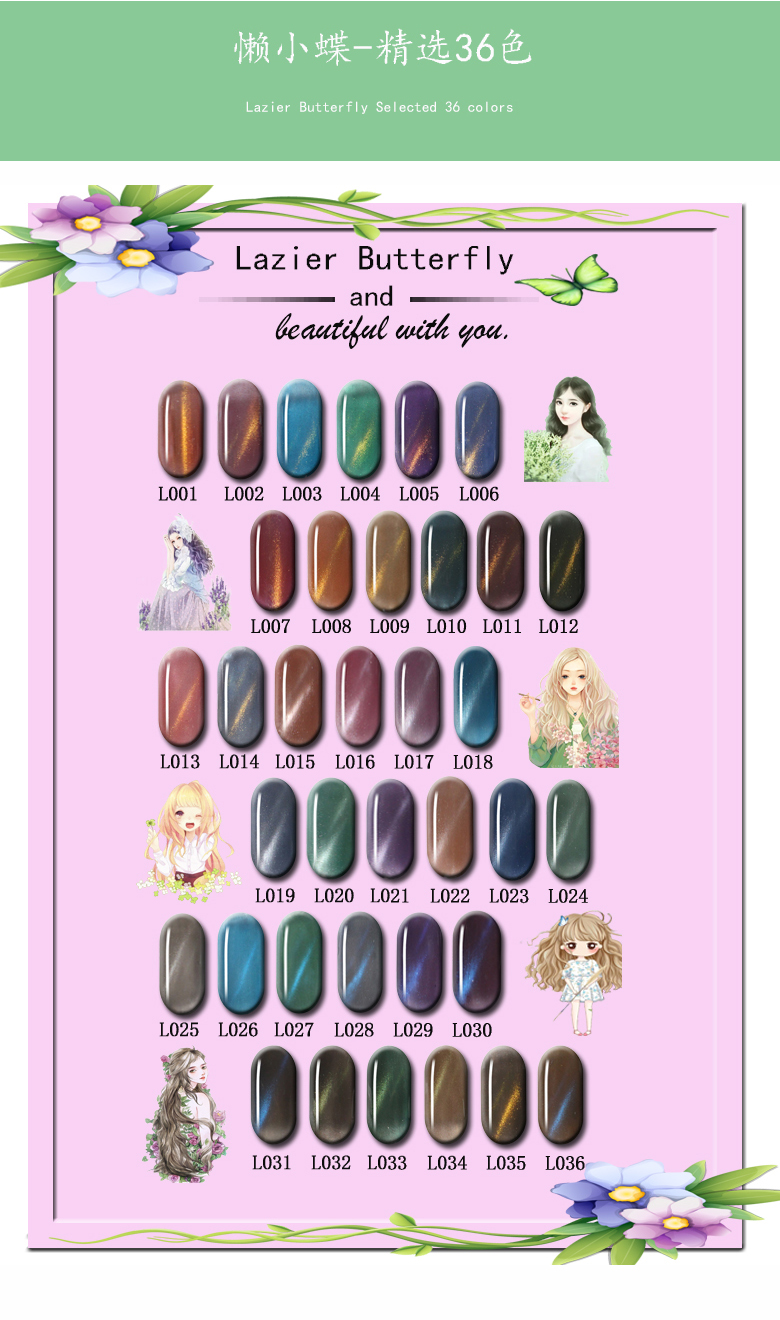懶小蝶Lazier Butterfly貓眼指甲油膠2018新色隨溫度變色美甲